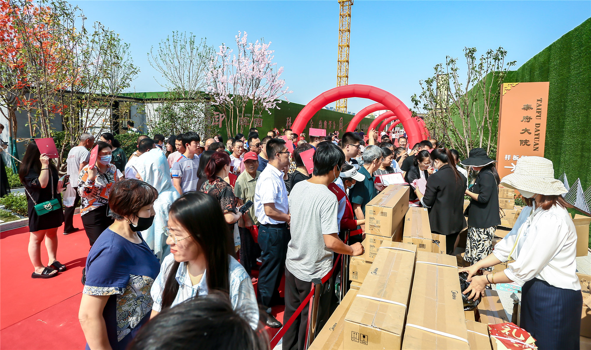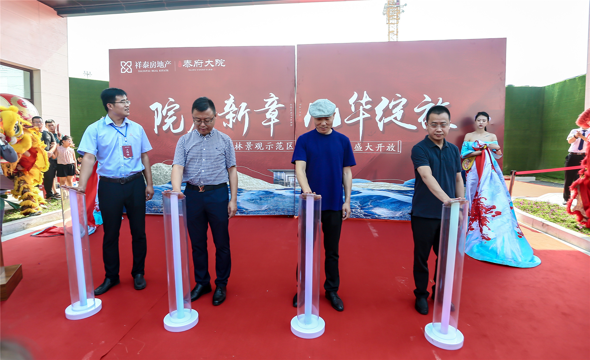 歷時四個月工期的緊張籌備 只為給大家一份滿意的答卷 6月26日 開放儀式現場 人群熙攘 觀者如堵 準時親臨活動現場只為一睹其真容 隨著到場領導按下啟動按鈕 泰府大院景觀示范區暨營銷中心 正式開放!